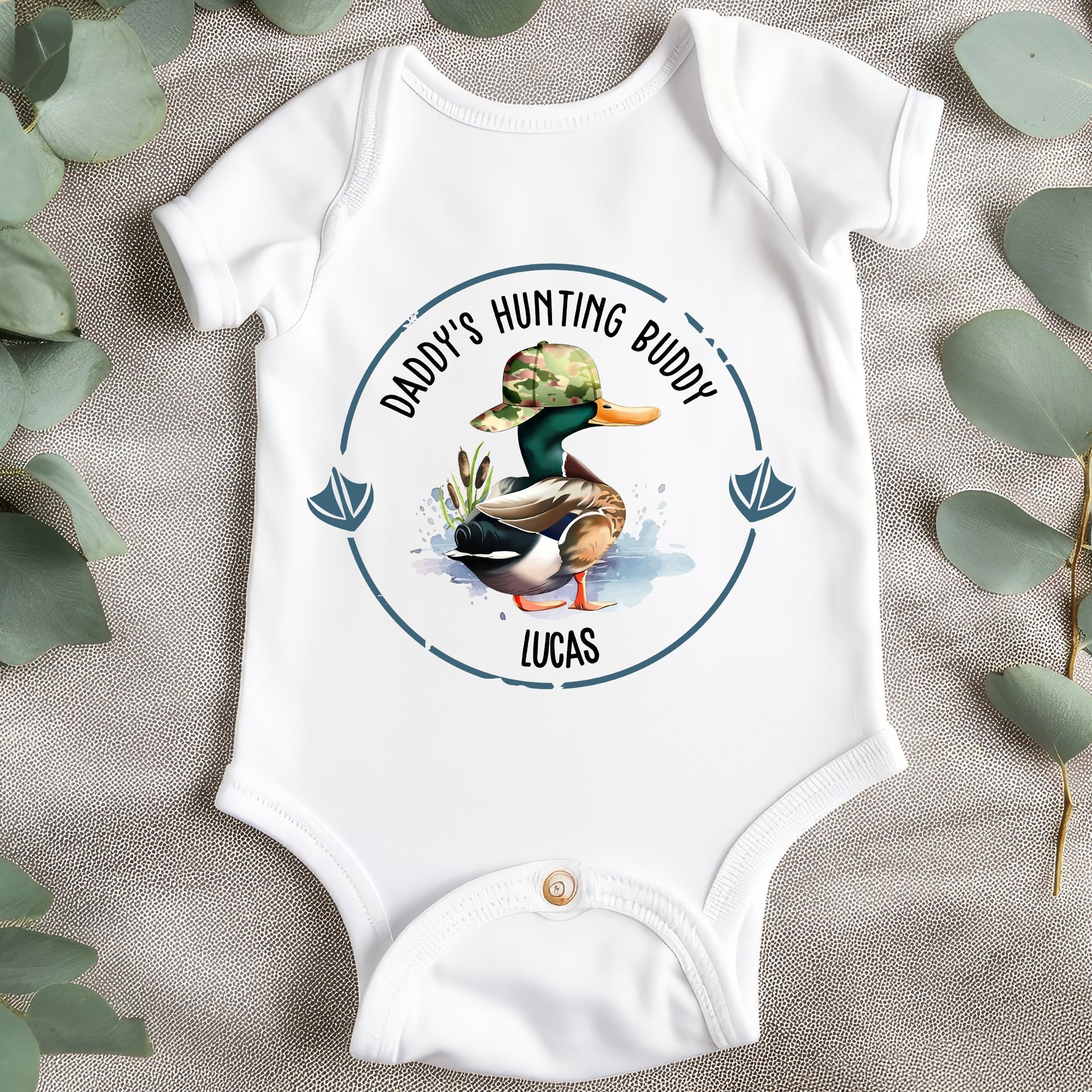 Gear up the littlest family member for hunting season with our “Daddy’s Hunting Buddy” Personalized Baby Onesie. This adorable onesie isn’t just baby apparel; it’s a statement piece celebrating the bond between daddy and baby during hunting adventures. Customize it for the perfect gift for a hunting lover dad and baby duo. Whether it’s duck hunting or embracing the hunting season, this personalized baby onesie adds a touch of outdoor charm to your little one’s wardrobe. Ideal for gifting to friends and family, surprise the proud parent and baby with a personalized onesie that reflects their shared interests and love for the great outdoors.