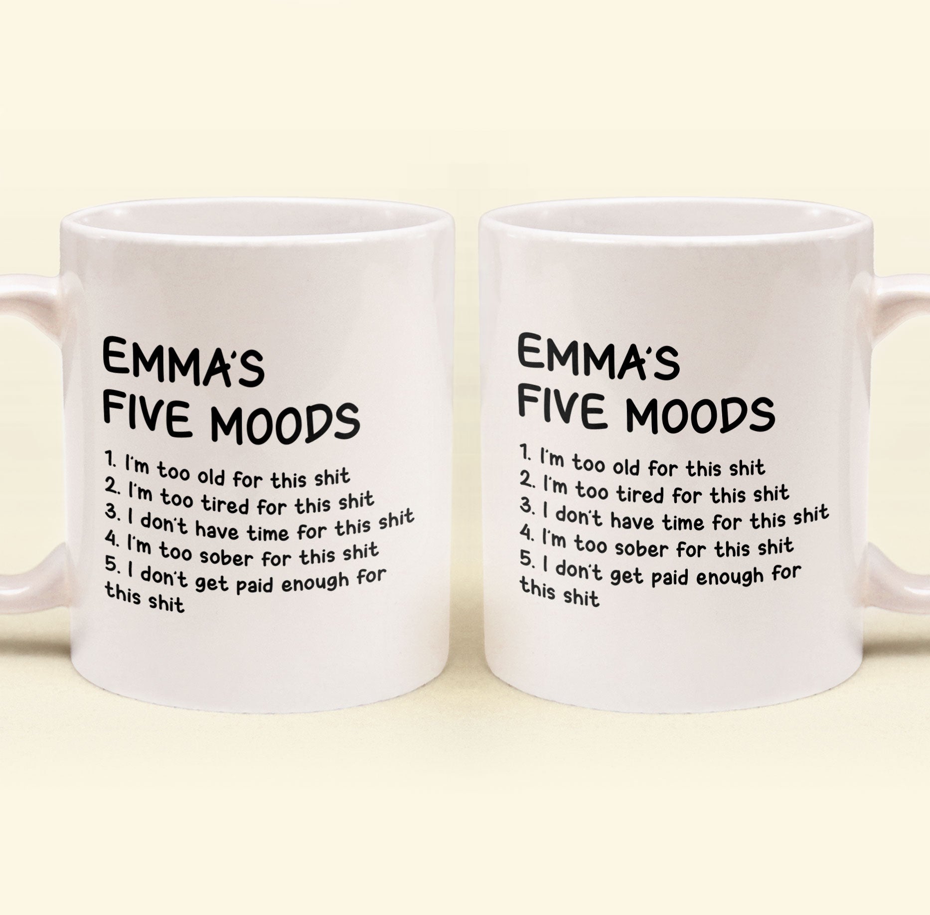 Funny Mug - My Five Moods - Gifts For Friends, Coworkers, Retirement - Personalized Mug