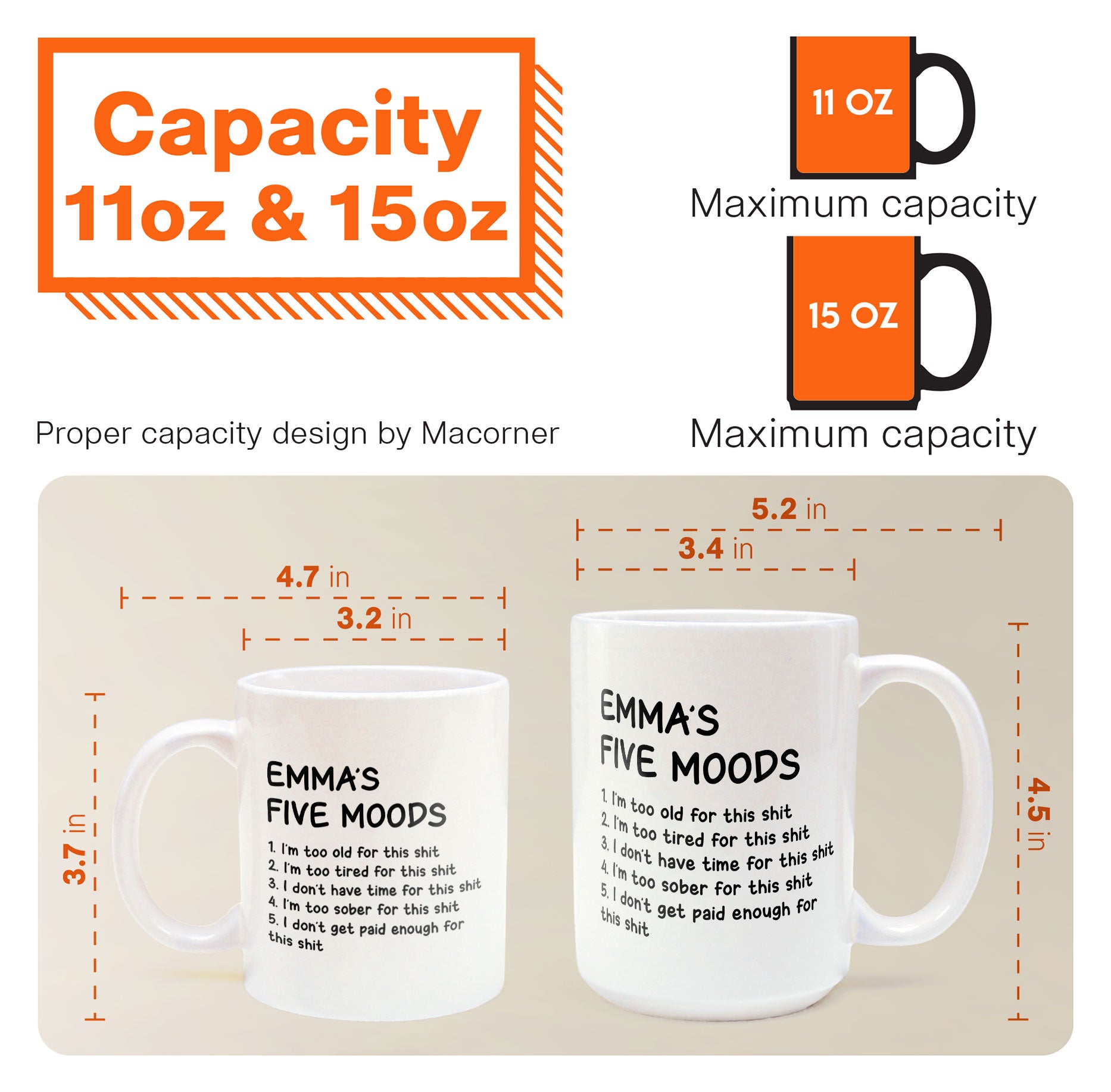 Funny Mug – My Five Moods – Gifts For Friends, Coworkers, Retirement – Personalized Mug