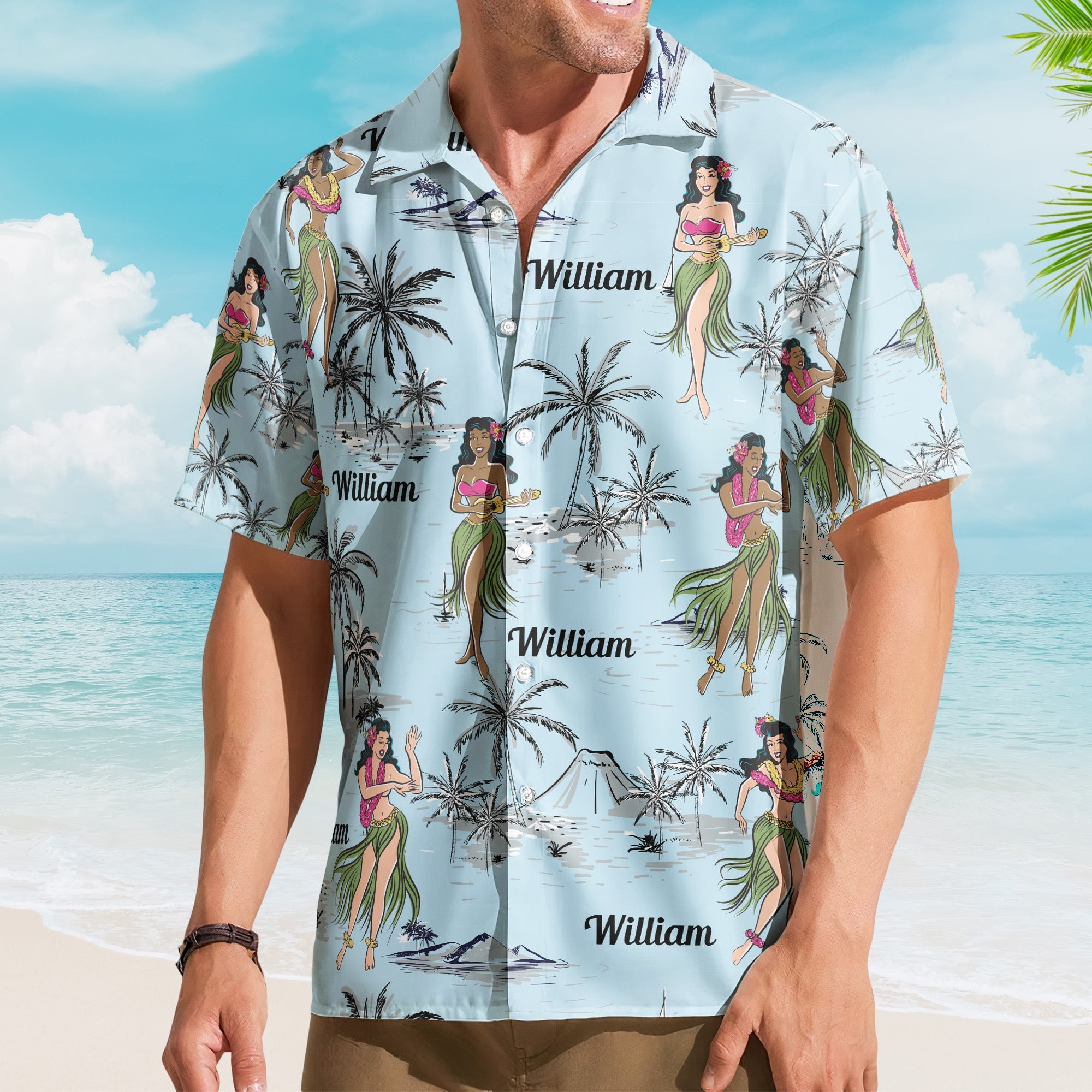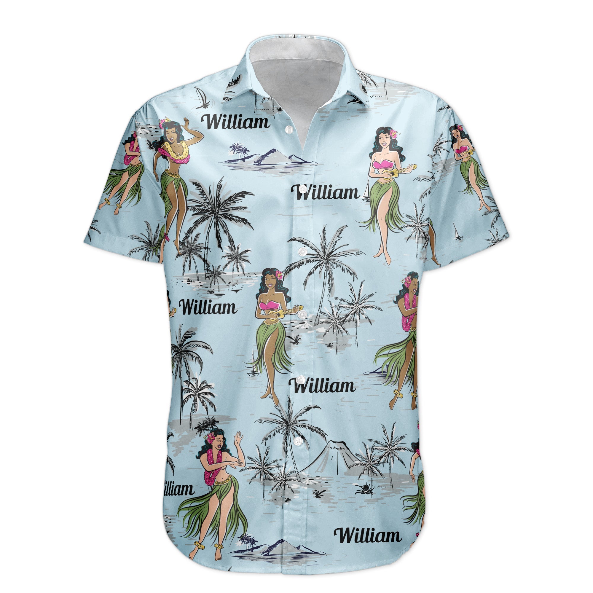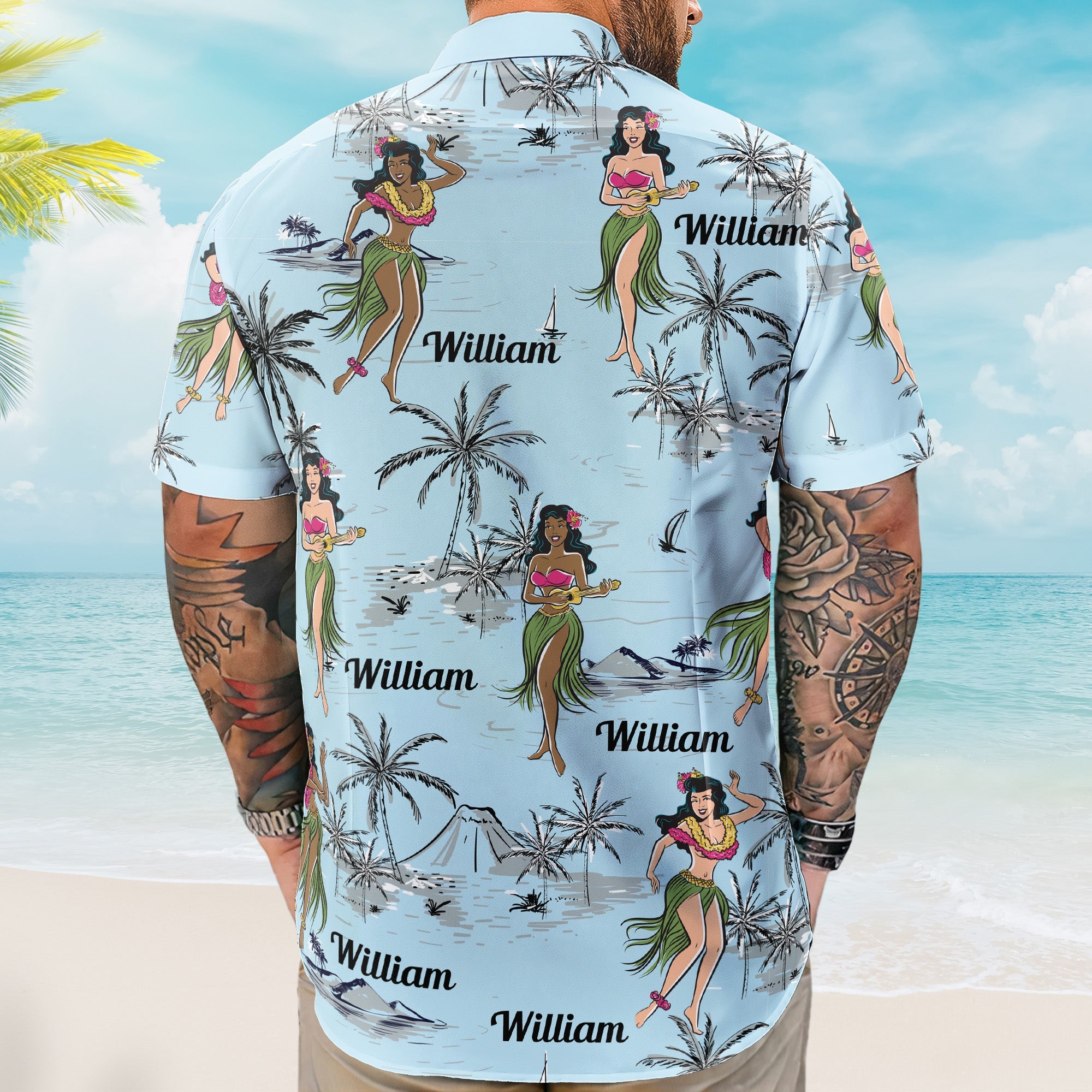 Make each shirt uniquely yours by adding a custom name, creating a personalized piece of wearable art that makes for an ideal gift for both men and women. Whether worn at beachside gatherings, summer parties, or casual outings, these shirts transport you to a bygone era where the hula dance captivated hearts.